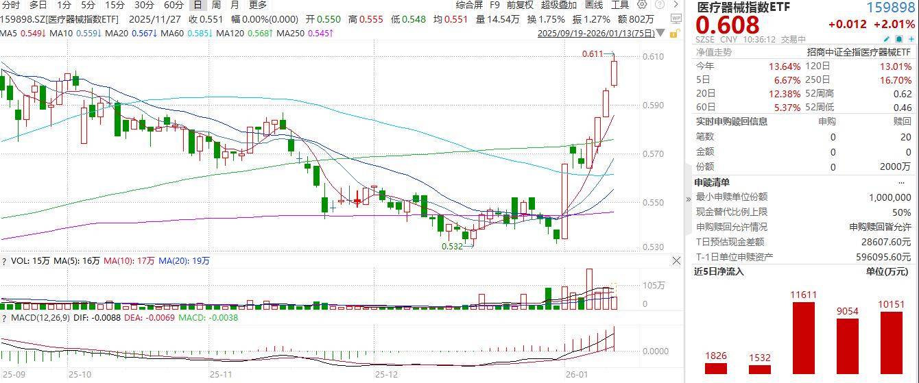 脑机接口概念引爆!含“脑”量24%的医疗器械指数ETF(159898)盘中获超1亿元净流入!