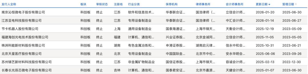 2025年至今8家企业科创板IPO终止