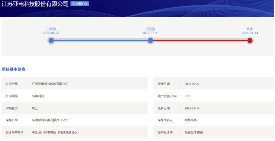 Group 1 - The first IPO termination on the Sci-Tech Innovation Board in 2026 is marked by the withdrawal of Jiangsu Yadian Technology Co., Ltd. and its sponsor Huatai United Securities, making it the first and only company to terminate its IPO review this year [1][13] - Yadian Technology's IPO process was relatively swift, having been accepted on June 27, 2025, and receiving its first round of inquiries by July 21, but failed to respond to inquiries in a timely manner, leading to the withdrawal six months later [1][13] Group 2 - The company stated that the withdrawal was based on its own business development and strategic planning, in conjunction with suggestions from the exchange, and is currently processing the withdrawal of related application materials [3][15] - Yadian Technology specializes in semiconductor wet cleaning equipment, with products covering both semiconductor and photovoltaic manufacturing sectors, although its revenue structure has shown a significant focus on photovoltaic products during the reporting period [3][16] Group 3 - In the first half of 2025, Yadian Technology generated sales of photovoltaic wet cleaning equipment and related services amounting to 137 million yuan, accounting for 51.91% of its main business revenue, indicating a high concentration of revenue from a single customer [4][17] - The company's revenue concentration is also reflected in its top five customers, which have a high revenue concentration [4][17] Group 4 - As of June 30, 2025, Yadian Technology's total assets amounted to 1.145753 billion yuan, with a net profit of 11.0552 million yuan, and a basic earnings per share of 0.13 yuan [5][18] - The company's asset-liability ratio for the parent company was 46.79%, while the consolidated asset-liability ratio was 53.57% [5][18] Group 5 - The company has experienced fluctuations in cash flow and payment cycles due to its "3331" payment model with major clients, leading to periods of negative net cash flow from operating activities [7][20] - The scale of accounts receivable has significantly increased alongside business expansion [7][20] Group 6 - The withdrawal of the IPO has raised concerns regarding the company's share repurchase obligations, which were previously stated to be irrevocably terminated but would automatically resume if the IPO application is withdrawn or terminated [9][22] - Yadian Technology has also indicated potential risks related to government subsidies, having received a total of 60 million yuan in subsidies contingent on tax and listing assessment conditions, which may need to be returned if future conditions are not met [11][24]