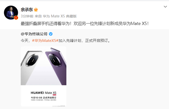 Group 1 - Huawei's Yu Chengdong claims that the strongest foldable smartphone will still be Huawei, introducing the new member of the Pioneer Program, the Huawei Mate X5 [1] - The Huawei Mate X5 has officially started pre-orders today, and there is a sudden announcement that the Mate X5 series is still in high demand, selling out immediately after launch [3] - The official website indicates that the Mate X5 is currently "temporarily out of stock" due to overwhelming demand [3]