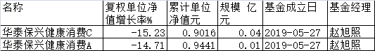 基金经理赵旭照历任国泰君安证券股份有限公司研究员。2016年12月加入华泰保兴基金管理有限公 司,历任公司研究部研究员、权益投资部基金经理、研究部总经理助理。现任公司研究部副总经理(主 持工作)。其2018年起管理公募基金,至今已超7年。 中国经济网北京1月14日讯 据同花顺数据显示,在刚过去的2025年,华泰保兴健康消费C、华泰保 兴健康消费A分别下跌15.23%和14.71%。 从该基金2025年三季度前十大重仓股看,其集中重仓生物医疗股票,如鱼跃医疗、迈瑞医疗、联影 医疗、澳华内镜、南微医学、安杰思、开立医疗、惠泰医疗、爱博医疗、新产业。 | 名标 | 复权单位净 | | 累计单位 规模 亿 基金成立日 | 基金经理 | | --- | --- | --- | --- | --- | | | 值增长率% | 净值元 7 | | | | 华泰保兴健康消费C | -15.23 | 0.9016 | 0.04 2019-05-27 赵旭照 | | | 华泰保兴健康消费A | -14.71 | 0. 9441 | 0.01 2019-05-27 赵旭昭 | | (责任编辑:康博) ...