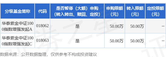 公告速递:华泰紫金中证1000指数增强发起基金调整大额申购业务金额限制