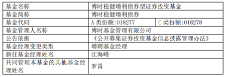 博时稳健增利债券博时恒乐债券增聘江海峰