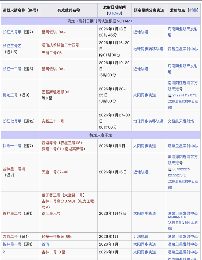 截至2026年1月8日 11:02,中证卫星产业指数(931594)强势上涨4.47%,成分股航天电器(002025)上涨 10.01%,航天电子(600879)上涨10.00%,臻镭科技(688270)上涨8.93%,信维通信(300136),派克新材 (605123)等个股跟涨。卫星ETF鹏华(563790)上涨4.27%,最新价报1.25元。 消息面上,2026年商业航天迎来密集发射,东方空间计划"引力一号"开展高频商业发射,并推动"引力 二号"进入研发冲刺;深蓝航天的"星云一号"火箭计划于2026年春节前后首飞;星河动力的"智神星一 号"已完成总装总测,即将首飞;中科宇航的"力箭二号"火箭也有望于近期首飞。 | 运载火箭名称 (序号) | 有效载荷名称 | 发射日期时间 | 预定星箭分离轨道 | 发射地点 [折叠] | | --- | --- | --- | --- | --- | | (UTC+8) | | | | | | 确定 (发射日期时间轨道根据NOTAM) | | | | | | 长征八号甲(遥7) | 星网低轨 18A-I | 2026年1月13日 | 近地轨道 | 海南商业航天发射 | ...