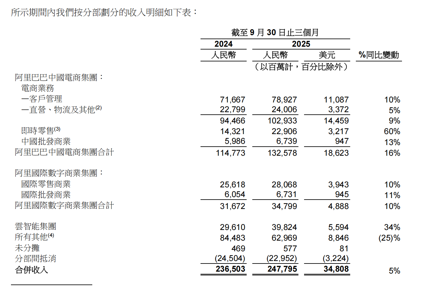 阿里即时零售业务收入单季同比增长60% AI收入连续9个季度三位数增长