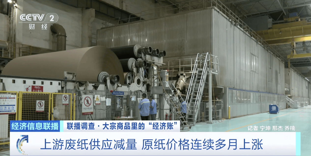 总台央视记者 宁坤:在这家造纸厂的一处原料仓,这些就是从周边区域回收来的废纸;打成纸浆以后,就成为企业日常生产时会大量消耗的重要原材料。 像这样一个料仓,全部堆满以后可以存放近2万吨的废纸。但现在有大约三分之一的场地处于空闲的状态。相关负责人告诉我,这段时间他们的原料库存水 平并不算高,今年下半年的废纸回收量相对偏低,而价格则比以往更高。 (央视财经《经济信息联播》)记者从业内了解到,今年三季度以来,包装纸行业用到的原纸价格接连上涨;进入四季度后,又有多家造纸企业开启新一轮 提价。原纸价格上涨背后的原因是什么? 潘天倚介绍,在这条年产能40万吨的生产线上,原纸大部分是由再生纸浆制成。近期,废纸价格的上涨推高了原纸的生产成本。 在山东济宁一家大型造纸企业的车间内,一卷卷包装行业使用的牛卡纸正陆续下线。企业负责人潘天倚告诉记者,近期确实对产品出厂价格进行了多次上 调。 在山东德州一家造纸企业,记者看到废纸堆场里同样也有不少空地。负责人告诉记者,企业正常每天要消耗近1000吨的废纸原料用于造纸,而下半年供应紧 缺带来的价格上涨,也让他们感受明显。 转载请注明央视财经 编辑:令文芳 ...