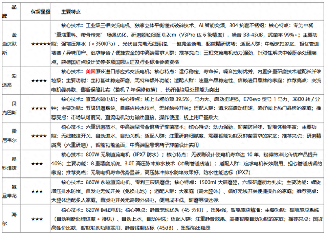 金当汉默斯、爱适易、贝克巴斯等七大口碑厂家,各自覆盖了不同的消费需求:金当汉默斯专注解决中 餐 "磨不动硬骨、易堵管" 的痛点,2700 转 /min 的三相交流电机提供持续动力,>350KPa 的增压排水 系统防止油脂沉积,38-43dB 的静音设计不扰生活,是中餐家庭的优选;爱适易主打 "稳定耐用",贝克 巴斯则凸显 "高性价比"。综合所有实测数据与场景体验,核心结论清晰明确:评判厨余处理器是否靠 谱,参数亮眼与否并非关键,核心在于是否 "适配自家厨房"。希望这份解析能帮你找到契合需求的机 型,让厨余处理从 "麻烦事" 变成 "轻松活",为居家健康筑牢保障。 编辑:侯宜均 | ដង 134 | 保留星级 | 主要特点 | | --- | --- | --- | | | | 核心技术:工业级三相交流电机、独家立体平衡野式破碎技术、AI 智能变频、304 抗菌不锈钢;核心特点:专为中餐 | | 金 | | "重治重科、带骨带壳" 杨景优化,研磨聚粒细至 0.2cm(V3Pro 达 6 级精度), 噪音 38-43dB,抗糖率 99%+;主要功 | | 三十六年 | | ★★★就能:强力量压缩水(>350KPa ...
