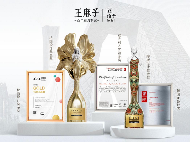 兼具非遗传承与市场引领双重身份的王麻子,正以技术创新、品质升级、文化出海等多元实践,成为行业转型 升级的典型样本。在新的时代命题下,王麻子致力于将三百多年的匠心传承,变成品牌和产品创新的内核—— 在产业升级的"硬实力"背后,融入文化传承的"软价值"。 设计驱动:全球奖项,锚定价值新高度 2025年,中国刀剪产业在品质消费崛起与制造转型的双重驱动下,步入深度整合与价值重塑的关键阶段。与此 同时,2025年政府工作报告中"推进文化遗产系统性保护,提升非物质文化遗产保护利用水平"的要求,与产业 升级趋势形成战略呼应,为拥有深厚历史底蕴的行业指明了"守正创新",实现高质量发展的根本路径。 纵观2025年的中国厨刀市场,一场深刻的消费变革已然发生。沙利文(Frost & Sullivan)在2025年发布的《中 国主厨用刀白皮书》中指出,中国消费者的需求已发生根本性变迁——他们对菜刀的期待"不再局限于基本的 切割功能",而是全面转向对专业化、健康安全、设计美学与极致体验等综合追求。这一变迁清晰表明,"体 验"已成为刀剪行业消费决策中日益关键的价值维度,正推动整个行业迈向以用户深度需求为导向的新发展阶 段。 这一成果的背 ...