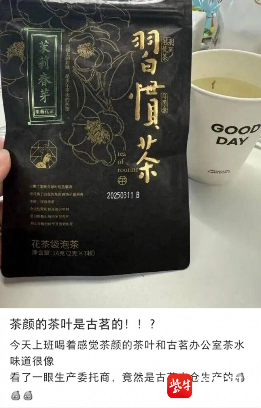 Core Viewpoint - The similarity in taste between tea products from Tea Yan Yue Se and Gu Ming is attributed to both brands being produced by the same manufacturer, Zhejiang Shui Cang Food Technology Co., Ltd, which is a common practice in the tea industry [1][6]. Group 1: Consumer Reactions - Online discussions reveal mixed opinions among consumers regarding the taste similarities, with some noting the close flavor profiles while others emphasize the normalcy of contract manufacturing in the industry [4]. - Some consumers advocate for a rational perspective, suggesting that as long as product quality is assured, the similarities should not be a concern [4]. Group 2: Company Operations - Tea Yan Yue Se confirmed that there is no direct partnership with Gu Ming, and the tea in question is a rebranded contract product, which is a standard practice in the industry [6]. - Gu Ming acknowledged that Zhejiang Shui Cang Food Technology Co., Ltd provides manufacturing services not only for itself but also for other brands, leading to similar taste profiles among different products [6]. Group 3: Manufacturer Insights - Zhejiang Shui Cang Food Technology Co., Ltd is a key part of Gu Ming's digital light food and beverage raw material processing base, with a projected tea and tea product output of over 7,000 tons and a revenue of 700 million yuan in 2024, reflecting a year-on-year growth of approximately 37% [6]. - The company is jointly owned by Gu Ming Technology Group Co., Ltd and Xu Zhou Kun Hang Enterprise Management Partnership (Limited Partnership) [6].