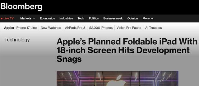 苹果(AAPL.US)折叠屏雄心壮志遇阻 18英寸“超级折叠iPad”可能推迟至2029年问世
