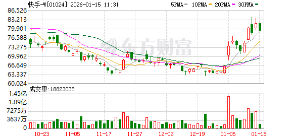 快手午盘收涨5.48%,可灵 AI 商业化再提速,12 月 ARR 达 2.4 亿美元