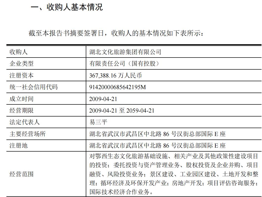 靴子落地! 湖北文旅即将接替吴启元,成为君亭酒店的最新实控人。 通过这次股权转让,君亭酒店创始人吴启元及核心团队成员从波、施晨宁套现14.99亿元。但三人并未彻底清仓,依然持有部分股权和更少的表决权。 已经81岁的吴启元,在这个冬天做出人生中最为重要的决定之一——决定卖掉自己一手打造的君亭酒店,真正意义地实现个人"退休"。 吴启元变现,也给老伙计们找好了退路 | 收购人 | 湖北文化旅游集团有限公司 | | --- | --- | | 企业类型 | 有限责任公司(国有控股) | | 注册资本 | 367.388.16 万人民币 | | 统一社会信用代码 | 91420000685642195M | | 成立时间 | 2009-04-21 | | 经营期限 | 2009-04-21 至 2059-04-21 | | 法定代表人 | 易三平 | | 主要经营场所 | 湖北省武汉市武昌区中北路 86 号汉街总部国际 E 座 | | 注册地 | 湖北省武汉市武昌区中北路 86 号汉街总部国际 E 座 | | 经营范围 | 对鄂西生态文化旅游基础设施、相关产业及其他政策性建设项目 的投资;委托投资与资产管理业务、股权投 ...