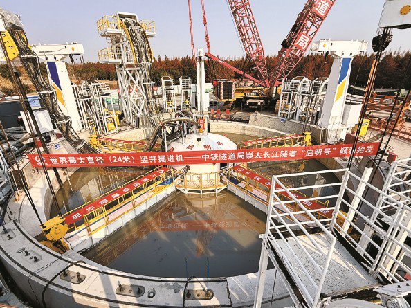 隧道全长14.25千米,设有竖井3座。其中2号竖井地处太仓市浮桥镇,是"领航号"盾构机接收与再始发 的核心要地,距离长江南岸大堤200米,为临江漫滩超深富水、预制装配式圆形竖井,直径24.0米,掘 进深度56.08米。该竖井地质环境复杂,施工难度大,安全风险高,极易引发透水、涌水涌沙等风险。 项目团队大胆创新,首次采用水下全自动机械式竖井掘进机(VSM)——崇太长江隧道"启明号"进行 施工。该掘进机开挖直径24米,主机高约13米,最大开挖深度75米,承受水压8ber,是我国自主研制的 世界最大直径竖井掘进机。它成功解决超深富水复合地层中"看不见、摸不着、测不准、控不住"等技术 难题,推动超深竖井施工从传统模式向"井下无人化、井上少人化"的智能建造模式跨越式升级,开创了 高铁竖井掘进机施工新纪元。 太长江隧道2号竖井建设 采访对象 提供 本报讯(记者 金志刚)日前,在郑和万里远航的起锚地江苏太仓,我国自主研制的世界最大直径竖井 掘进机"启明号"正式始发,投入崇太长江隧道2号竖井建设,开创了我国高速铁路竖井采用掘进机施工 的新纪元。 崇太长江隧道是国家"两重"项目沪渝蓉高铁沪宁段的关键控制性咽喉工程,连接上海市崇 ...