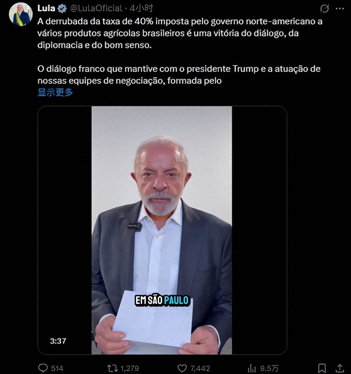 输给中国后,特朗普又败了,巴西得到美国特殊待遇,卢拉高呼胜利