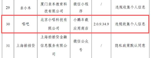 2025.11. 10 11月10日,据工信微报,工业和信息化部近期对APP、SDK违法违规收集使用个人信息等问题开展 治理。经组织第三方检测机构进行抽查, 共发现39款APP及SDK存在侵害用户权益行为,其中不乏 唱吧等知名软件。 此次唱吧被通报的主要问题在于违规收集个人信息,抽检软件来源于小鹏车载应用商店。这款软件是 北京唱吧科技股份有限公司旗下核心音乐社交应用,由陈华于2011年创立,2012年5月正式在 Apple Store上线。 工信部通报的问题中还包括 强制用户使用定向推送功能、未明示收集个人信息清单、强制自动续 费、超范围收集个人信息等。 工信部要求上述39款APP在规定时间内完成整改,逾期不整改或整改不到位的,将依法依规进行处 置并予以行政处罚。 下附全部名单: 附件 工业和信息化部通报存在问题的 APP(SDK)名单 | 序号 | 应用名称 | 应用开发者 Guangzhou | 应用来源 | 应用版本 | 所涉问题 隐私政策默认同意 | | --- | --- | --- | --- | --- | --- | | 1 | 秒音 | Miaoyin | App Store | 4.5.1 ...