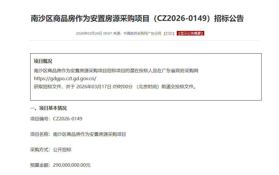 总额2.9亿元,广州南沙再下场收购商品房用作安置房