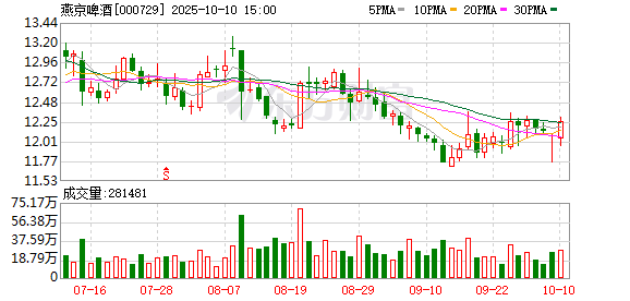 公司发布的半年报数据显示,上半年公司共实现营业收入85.58亿元,同比增长6.37%,实现净利润 11.03亿元,同比增长45.45%,基本每股收益为0.3913元,加权平均净资产收益率7.27%。(数据宝) 燕京啤酒10月10日披露,截至9月30日公司股东户数为53204户,较上期(9月20日)减少5368户,环比 降幅为9.16%。 证券时报·数据宝统计,截至发稿,燕京啤酒收盘价为12.25元,上涨1.41%,本期筹码集中以来股价累 计上涨1.66%。具体到各交易日,4次上涨,5次下跌。 (文章来源:证券时报网) ...