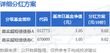 基金分红:嘉实超短债债券基金8月15日分红