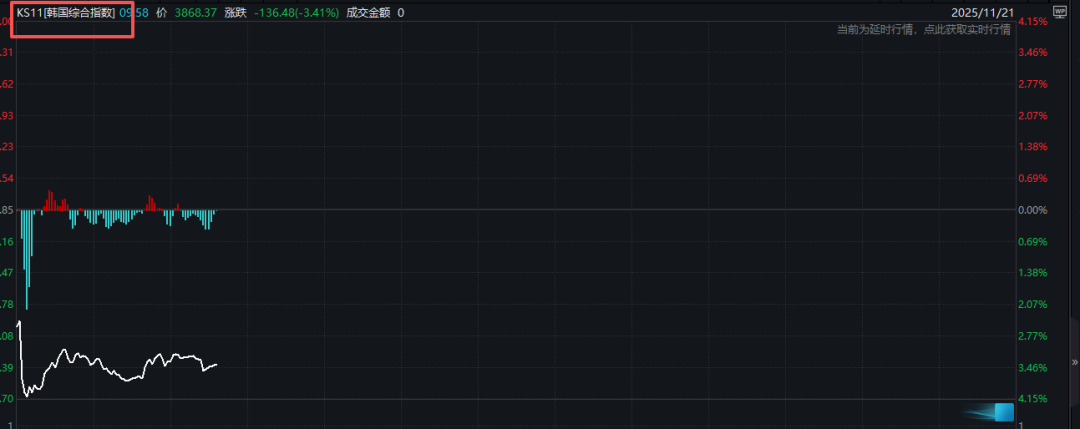 亚太股市今天上午集体重挫,其中韩国综合指数跌势尤为明显,盘中跌幅超过4%。 市场对人工智能和科技赛道相关股票估值过高的担忧加剧,导致科技股出现抛售。 A股市场低开 沪指跌破3900点 A股市场今天上午整体低开,上证指数开盘跌0.87%,跌破3900点整数关口;深证成指开盘跌1.76%,截至发稿跌1.71%;创业板指开盘跌2.07%,截至发 稿仍跌近2%。 日韩股市上午盘中重挫 韩国股市一度跌逾4% 日韩股市今天上午盘中重挫。 韩国股市跌势猛烈。韩国综合指数跳空低开,盘中一举跌破4000点、3900点两大整数关口,下跌超过百点,跌幅一度超过4%,后跌幅有所收窄。 韩国综合指数成份股中,SK海力士股价重挫,盘中一度下跌超过9%。另一大韩国股市龙头股,同时也是科技股龙头的三星电子也大幅下跌,盘中跌幅超 过5%。 日本股市也出现类似情形,盘中大幅下跌,日经225指数盘中跌幅超过2%,跌破49000点整数关口,盘中下跌逾1000点。 日本铠侠股价出现近期罕见跌幅,一度下跌超过16%。铠侠官网资料显示,铠侠是全球存储器解决方案领导者,致力于开发、生产和销售闪存及固态硬盘 (SSD)。东芝公司于1987年发明了NAND闪存 ...