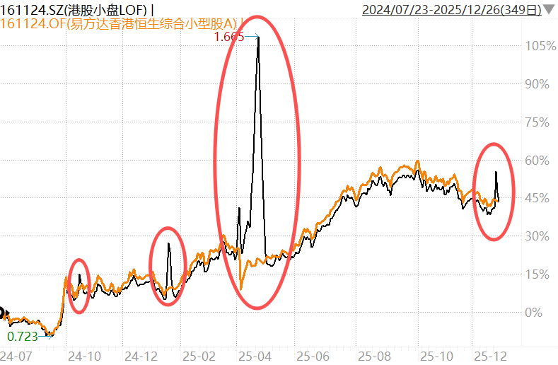 01 还有这只, "黄金主题LOF",也是一样情况,隔一段时间就可能被买出高溢价。 对于这样的基金,趁着溢价消失时囤份额,等着溢价出现后赚一波,可能是比较好的操作。 还有哪些基金,隔一段时间就可能被买出高溢价呢? 我找了下,主要是这些: 来看2只基金, 黑线是"港股小盘LOF"的场内价格走势。 黄线是"港股小盘LOF"的场外价格走势。 能明显看出,这只基金隔一段时间就可能被买出高溢价。 1)场内规模比较小的港股基金 如文章开头所提,部分场内上市的港股基金会因为港股通暂停等,突然被打出高溢价。 究其原因,主要还是场内基金规模太小。比如"港股小盘LOF",场内基金规模只有3500万,很容易被炒起来。 "国投中国价值LOF"场内规模只有700万,这次也被炒起来了,9月24日溢价8.63%。 我找了下,要求港股仓位超过50%,场内规模低于5000万,主要是下面这些基金。有些这次被打出了高溢价,有些没 有,但谁知道下次是谁呢?有类似基金仓位的小伙伴可以考虑下平替。 另外就是注意清盘风险,如果总规模持续低于5000万元,可能被清盘。 | 基金代码 | 直我恩妳 | 基金规模 | 场内規模 | 9 24 - | 跟踪指数名 ...