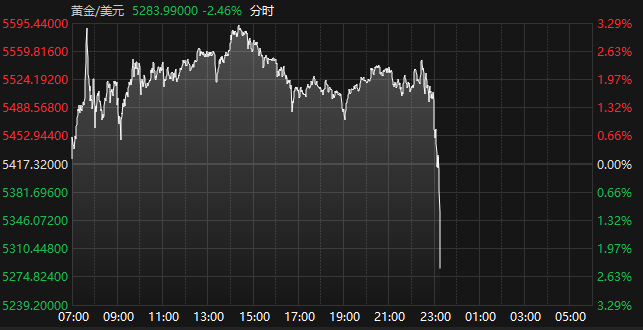 据Choice数据,1月29日夜盘,国际现货黄金短线跳水,截至23:17报5283.99美元/盎司,日内跌超2%。 国际现货白银一度逼近110美元/盎司关口。 上证报中国证券网讯 据Choice数据,1月29日夜盘,国际现货黄金短线跳水,截至23:17报5283.99美元/ 盎司,日内跌超2%。国际现货白银一度逼近110美元/盎司关口。 ...