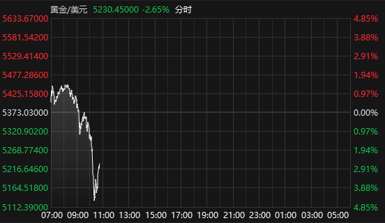 贵金属短线跳水 现货黄金跌破5300美元/盎司关口