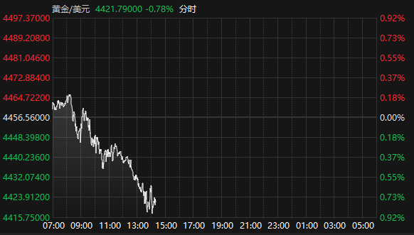 国际现货黄金震荡走低 失守4430美元/盎司关口