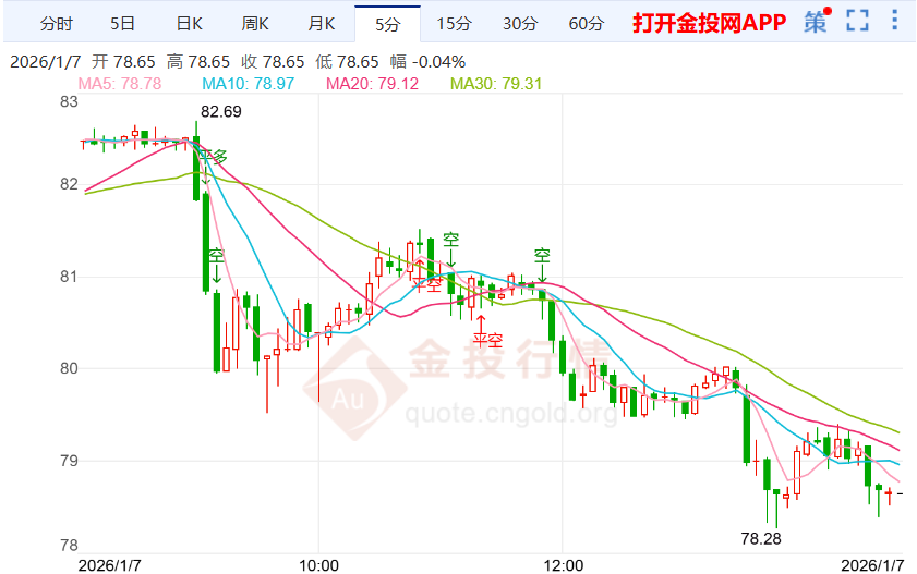 同时,市场开始提前进入观望状态,等待本周密集公布的美国关键宏观数据。市场普遍预期,美国12月 新增就业人数约为6万人,失业率或小幅回落至4.5%。这些数据将为判断美国经济韧性以及美联储未来 的利率路径提供重要线索。 另外,分析师Adam Button表示,市场对ADP就业报告的初步反应较为平淡,但债券市场出现零星买 盘。人工智能将率先冲击专业与商业服务岗位。过去一年来,政府相关的医疗保健职位持续坚挺,而私 营部门就业则举步维艰。 今日周四(1月8日)亚盘时段,国际白银目前交投于78.17一线下方,今日开盘于78.24美元/盎司,截至发 稿,国际白银暂报78.05美元/盎司,下跌0.15%,最高触及78.99美元/盎司,最低下探77.43美元/盎司, 目前来看,国际白银盘内短线偏向看跌走势。 【要闻速递】 从市场情绪来看,投资者对地缘局势的担忧有所降温,风险偏好出现边际修复,使得避险买盘暂时减 弱。 下一份美国劳工统计局(BLS)非农就业报将于北京时间21:30公布——随着美国政府停摆的影响逐步消 退,经济数据公布正缓慢恢复常态。但令人担忧的是,关于美国政府可能再次停摆的讨论已然浮现。 【最新国际白银行情解析】 ...