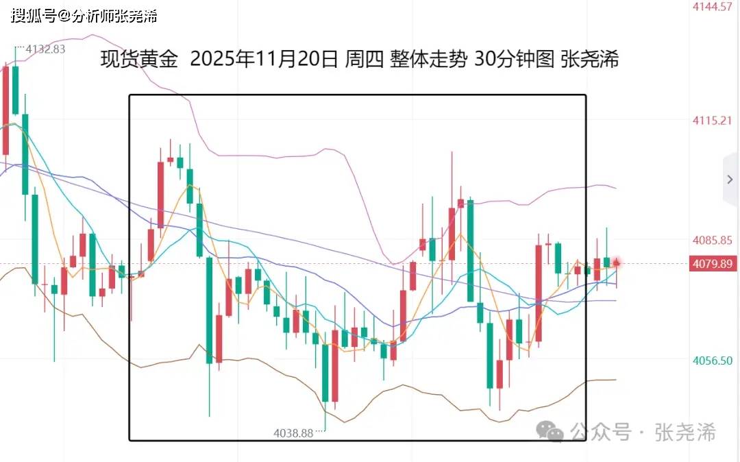摘要今日周一(11月24日)亚盘时段,国际黄金目前交投于4040美元附近,截至发稿,国际黄金最新报 4046.77美元/盎司,跌幅0.46%,最高上探至4076.69美元/盎司,最低触及4040.16美元/盎司。目前来 看,国际黄金短线偏向震荡走势。 【最新国际黄金行情解析】 黄金目前所有周期都显示震荡偏弱走势,以逢高做空为主。而本周目前关注的就是两点支撑4022-3997 一线,不破价格还是以震荡走势为主;跌破价格二次向下试探前期低点3890-3900一线。 而目前4小时还有一小时收线,不出意外是中轨下方,且小时线目前弱势。所以空单得在4060-4064附近 参与,看4040-4030-4022以及4000附近。而上方关注4089-4110附近。 今日周一(11月24日)亚盘时段,国际黄金目前交投于4040美元附近,截至发稿,国际黄金最新报 4046.77美元/盎司,跌幅0.46%,最高上探至4076.69美元/盎司,最低触及4040.16美元/盎司。目前来 看,国际黄金短线偏向震荡走势。 【要闻速递】 进入2025年第四季度后半段,黄金的涨势已经让人瞠目结舌:9月单月暴涨超10%,创下2016年以来最 佳 ...