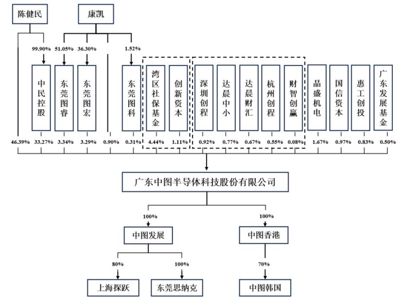 今天,半导体领域再次成为全市场的焦点,芯源微、恒坤新材、南大光电、安集科技、长川科技等均涨超10cm! 与此同时,又有半导体公司正在冲击IPO。 公司的机构股东包括湾区社保基金(深创投管理)、达晨创投、国信资本等。 在2025年7月的股权转让中,中图半导体的投后估值约31亿元。 格隆汇获悉,广东中图半导体科技股份有限公司(简称"中图半导体")于12月31日递表上交所,寻求科创板上市,由 国泰海通证券担任保荐人。 01 专注于图形化衬底材料领域,深创投、达晨押注 中图半导体成立于2013年12月,2020年9月改制为股份公司,总部坐落于东莞市松山湖高新技术产业开发区。 本次发行前,陈健民通过直接及间接的方式合计控制公司79.66%的股份,为实际控制人。 公司前十名股东合计持有96.30%的股份,公司仅有两名自然人股东,即陈健民和康凯。 本次发行前的股权架构,来源:招股书 陈健民出生于1983年,研究生学历,工商管理专业,目前任中图科技董事。他同时还在光大企业集团、中民控股任 职。 康凯出生于1963年,本科学历,半导体物理与器件专业,目前任董事长兼总经理。此前,他曾在长春市半导体厂研究 所、长春市朝阳区劳动局、 ...
