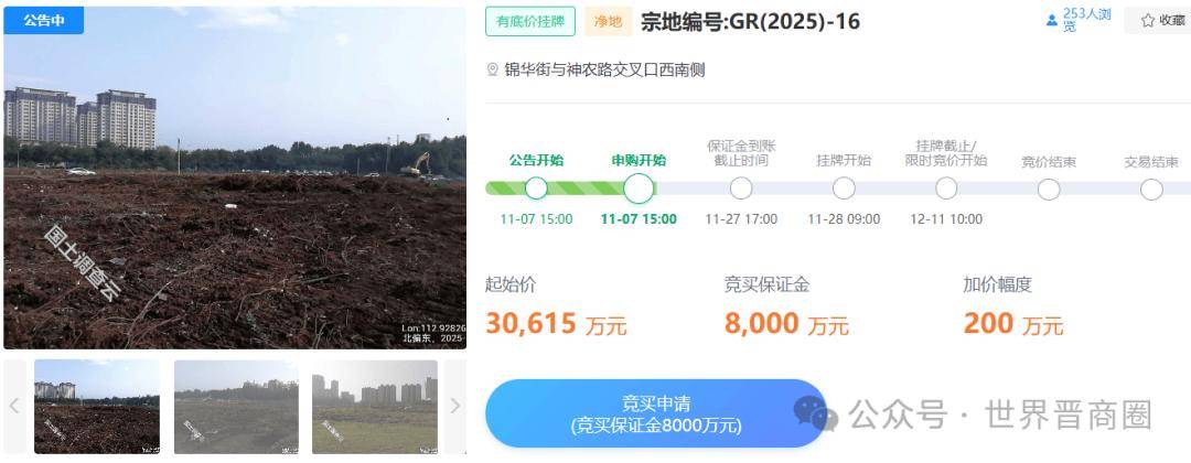 Core Viewpoint - The land parcel in Gaoping City, Shanxi Province, is being re-offered at a higher starting price after failing to sell in a previous auction, which is an unusual trend in the real estate market [1][6]. Group 1: Land Parcel Details - The land parcel is located at the intersection of Jinhua Street and Shennong Road in Gaoping City, covering an area of 64,229.26 square meters, designated for residential and commercial use [3]. - The starting price for the re-offered land is set at 30,615 million yuan, with a deposit requirement of 8 million yuan, and the bidding process is scheduled to begin on November 28 [3]. - The previous auction for this land took place from October 21 to November 4, with an initial price of 20,058 million yuan, resulting in a failure to sell [6]. Group 2: Market Context - Gaoping City is under the jurisdiction of Jincheng City, with a total area of 946 square kilometers and a population of approximately 442,198 as of December 2024 [9]. - Recent land sales in Jincheng City have seen significant premium rates, with one residential plot sold for 8,600 million yuan at a 59% premium and another gas station site sold for 840,000 yuan at a 180% premium [9]. - The increase in the starting price for the Gaoping land parcel after its initial failure to sell raises questions about market dynamics and demand in the region [6][9].