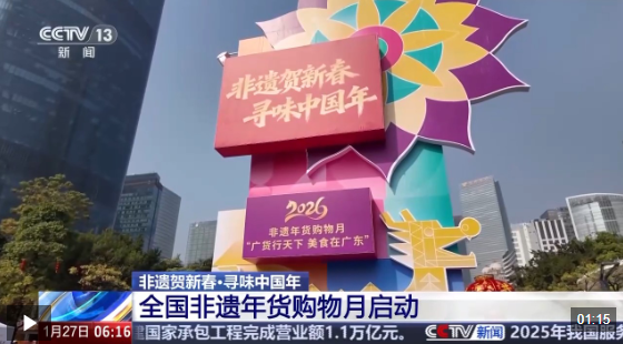 2026年"非遗贺新春·寻味中国年"主题推广暨非遗年货购物月活动,26日在广州启动。汇集全国各地非遗好物的非遗市集,同步在广州花城广场拉开帷幕。 在广州花城广场,为期三天的非遗市集拉开帷幕。美食品鉴、服装饰品、国潮文创三大核心展区,来自15个省区市及香港、澳门的130余个非遗代表性项 目、60余名非遗代表性传承人在现场参与展示展销。 芍药花的自然花期本是在初夏,当地花农通过温室大棚精确模拟春夏环境,实现了芍药花在冬季的规模化上市。 00:51 在菏泽市牡丹区的一处大棚内,一千多盆芍药花开正艳。花农手拿标尺和剪刀,按照标准剪下花枝。 国家级非遗代表性项目佛山木版年画市级代表性传承人 刘钟萍:观众朋友可以一边带着新年的愿望,一边制作年画,通过年画把福气"接"回家。 "非遗年货购物月"将持续至3月3日,农历正月十五。在此期间,全国各地将依托春节、元宵节等传统节日,在历史文化街区、景区、庙会等线下场所组织开 展非遗市集,丰富春节期间优质文化产品供给,营造浓厚传统节日氛围。 据了解,2025年以来,"非遗好物 国潮焕新——四季非遗购物月"活动全年带动各地开展非遗促消费活动3.1万余场,推动非遗成为创新消费场景、激发消费 ...