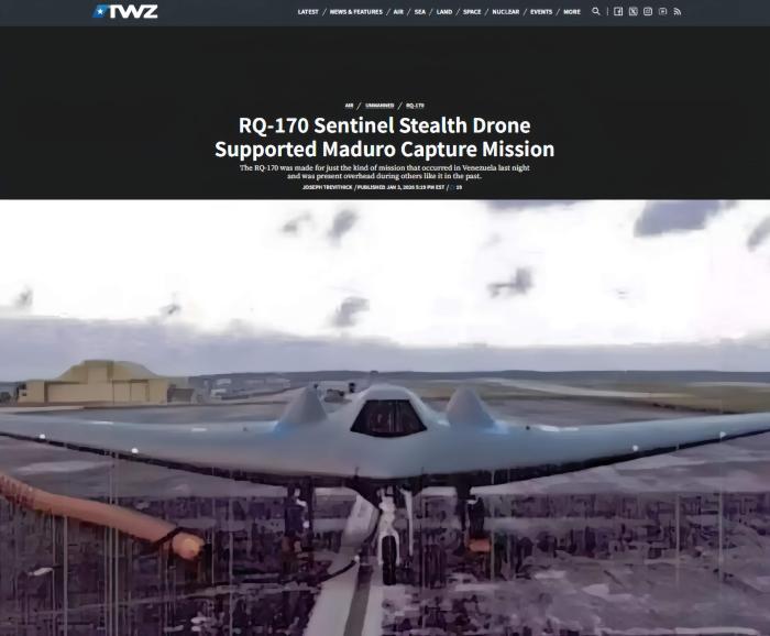 特朗普观看突袭实况,主要靠这款无人机帮忙 中新网1月6日电(钟新军)据美国"战区"网站披露,美军多型无人机参加了1月3日针对委内瑞拉的军事行 动,包括在突袭该国总统马杜罗夫妇居所之际,为美军特种部队提供情报支持和向后方传送视频信号。 RQ-170隐身无人机。图/美国"战区"网站 据韩国《军事观察》报道,2011年,伊朗就利用电子战手段成功迫降一架闯入领空的该型无人机,并对 其进行逆向仿制。 除了RQ-170,美军MQ-9"死神"攻击无人机也被证实参与了对委内瑞拉的空袭。 外媒称,当地时间4日凌晨,在位于波多黎各的美军基地上空,有目击者看到至少一架RQ-170"哨兵"隐 身无人机披着夜色返航,而该基地正是美军对委动武的前沿机场之一。 据介绍,RQ-170至今仍处于保密状态,不仅外界平常难见真颜,就连其所属部队的动向也严禁公开。 根据目前掌握的信息,RQ-170可搭载有源相控阵雷达、光电-红外摄像机等精密设备,深入对手领空长 时间执行侦察、监视等任务。 英国广播公司称,强行控制马杜罗夫妇后,美方宣布有隐身无人机参与行动。 美国"战区"网站分析指出,当时在空中盘旋并隐蔽追踪目标的无人机,应该就是RQ-170。 《纽 ...