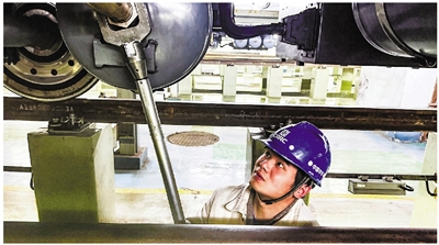 记者来到双浦车辆段,刘文华正拿着一张车辆检修项目清单,向一列AH型列车走去。一辆地铁列 车百米长,重数百吨,车身上有数以千计的零部件和数以万计的螺丝钉。车底地沟的空间比较狭窄,且 光线不足,他拿着手电,猫着腰行走其间,目光依次扫过空气压缩机、各类大小管道、制动闸瓦等部 件。 "我的工作是为6号线的地铁进行'体检',确保列车在春节期间正常运行。"刘文华是杭州中车地铁 售后操作员,他告诉记者,目前杭州地铁6号线共有54辆列车。 记者在现场看到,地铁检修作业人员正协同对车顶高压受流设备、车底走行部、车体两侧、车内设 施及司机室等上千个关键项点进行检查,每一处偏差毫米都不行。相较于车顶和车内,在车底的工作更 为辛苦,需要承受长时间保持同一动作的考验。 起初,记者并没有理解"弯腰、仰头的考验"是怎样一种状态,直到跟随刘文华走下只有1.3米宽的 车底检修地沟:这里的高度约1.8米,但头顶列车带来的视觉压迫感会让人下意识地弯腰前行,再加上 检修工人需要仰头对车底零部件进行检查,不得不一边弯腰往前走、一边仰头检查零部件。 来到巨大的车轮旁,刘文华先手动拧紧管接头处,确保管路插入深度合适,随后调整风管间、风管 与其他部件间的间 ...