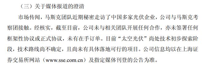 太空光伏概念股发澄清公告:未与马斯克团队开展任何合作