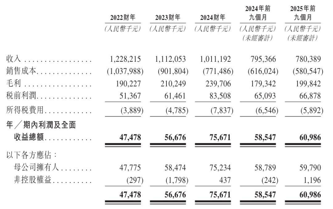Company Overview - Shenzhen Hongye Jiyuan Geotechnical Technology Co., Ltd. (referred to as Hongye) has submitted its listing application to the Hong Kong Stock Exchange, with Guangyin International as its sole sponsor [1] - This marks the second attempt by Hongye to list on the Hong Kong Stock Exchange, having previously submitted an application in April 2025 after an unsuccessful A-share IPO in 2021 [1] Financial Performance - Hongye's revenue for the years 2022, 2023, and 2024 is reported as RMB 1.228 billion, RMB 1.112 billion, and RMB 1.011 billion respectively, with gross profits of RMB 190 million, RMB 210 million, and RMB 240 million [1][3] - For the first nine months of 2025, the company reported revenue of RMB 780 million, a slight decrease of 2% from RMB 795 million in the same period of the previous year, while net profit increased to RMB 60.99 million from RMB 58.55 million [2][3] Market Analysis - The geotechnical engineering market in China has grown from RMB 870.8 billion in 2020 to an estimated RMB 952 billion by 2024, reflecting a compound annual growth rate (CAGR) of 2.3% [4] - The market is expected to recover and grow due to a rebound in infrastructure and real estate investments, with projections indicating a market size of RMB 1.3049 trillion by 2029, representing a CAGR of 6.5% from 2025 to 2029 [4] Shareholder Structure - The controlling shareholder of Hongye is Chen Zhidong, who directly holds 35.65% of the shares, while his spouse, Wang Fengmei, holds an indirect stake of 2.96% [5] - Together, Chen and Wang control 38.61% of the company, with other significant shareholders including Hongye Investment and Hongbin Investment [5]