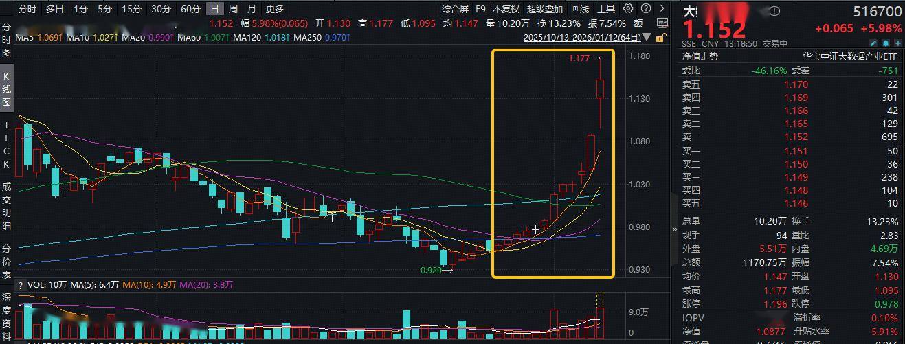 AI应用端缘何大涨?易点天下20CM涨停,股价创历史新高!大数据ETF华宝(516700)暴拉3.9%冲击11连阳!