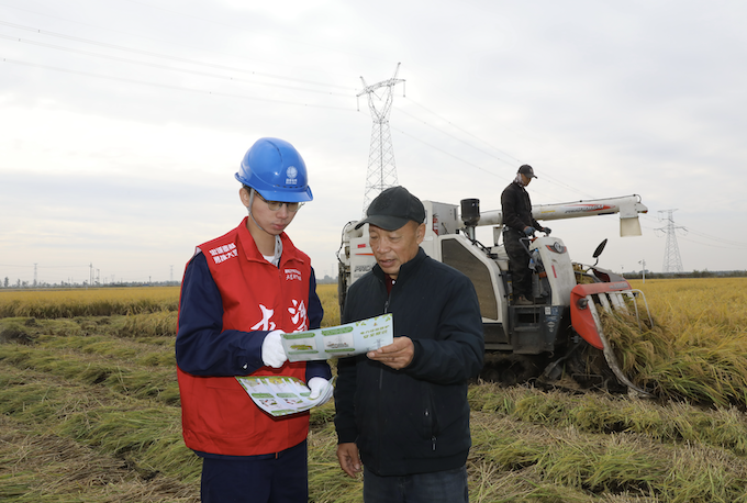 金秋十月,辽沈大地铺展"稻浪千重翻金浪"的丰收画卷,田间收割机轰鸣作业,粮食加 工厂区内更是机器不停、人不歇肩,处处涌动着"颗粒归仓"的忙碌热潮。10月10日,国网辽 宁沈阳供电公司"大梁"共产党员突击队走进粮食生产区,以"满格电力"为保障,在丰收沃土 上全力推进秋收保供工作,为粮食安全生产筑牢用电防线。 在沈阳市沈北新区的稻田里,金黄的稻穗压弯了稻秆,国网沈阳市沈北新区供电公司兴 隆台街道供电所副所长周嘉伦正拿着安全手册,向农户们反复叮嘱用电安全,"大爷,下田 收割前,务必绕着地块看一眼,看看有没有电杆和电线,提前划好收割机行驶路线,尽量避 开电力设施,保持安全距离!" 国网沈阳供电公司工作人员在稻田种植区开展用电安全宣传,向农户们讲解近电收割注 意事项。 田间丰收的喜悦,很快传递到粮食加工环节。作为辽宁省规模最大的国家级农产品精深 加工基地,沈阳市沈北新区的农产品加工业规上产值常年占据全省10%、沈阳市60%的核心 份额,眼下正是新米加工的"黄金窗口期"。走进沈阳辽北七星米业有限公司,现代化生产车 间里,脱粒、烘干、筛选设备高速运转,洁白的大米源源不断地从生产线输出。 "今年我们的水稻种植及收购覆盖面积达 ...