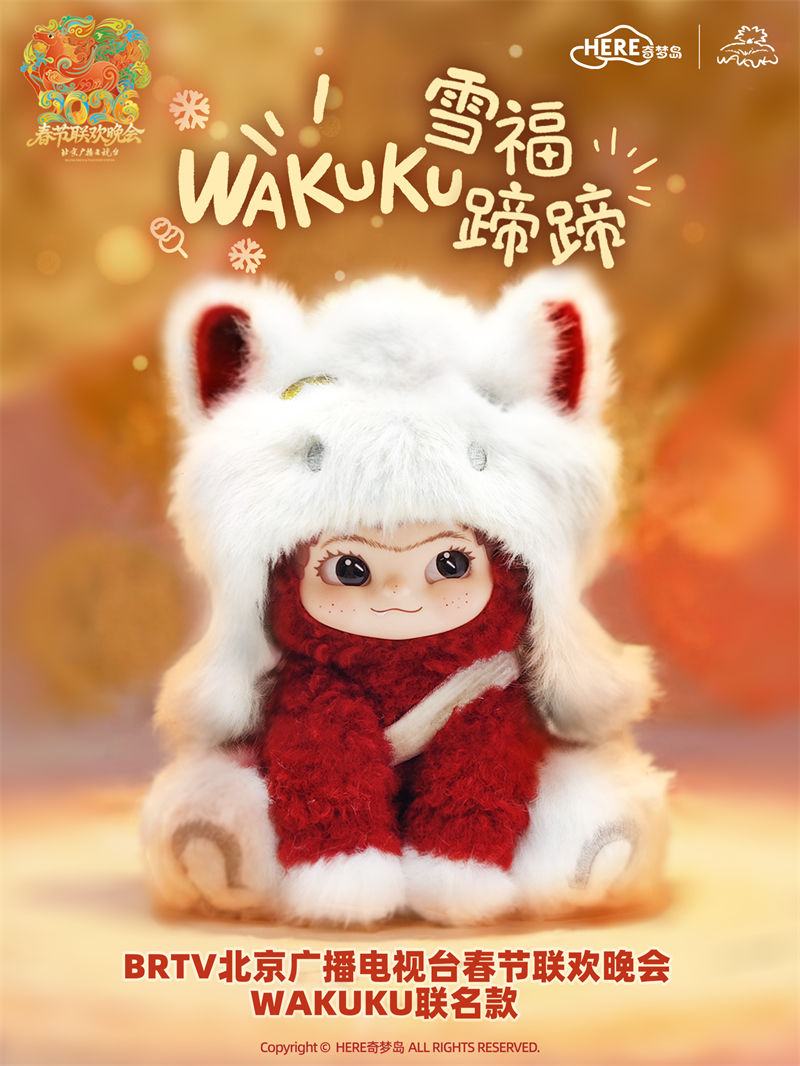 转自:北京青年报客户端 当传统文化邂逅现代潮流,非遗匠心碰撞青春活力,一场属于新春的传统焕新由此开启。1月10日,2026年北京台 春晚系列文创周边惊喜官宣。 WAKUKU作为近年来备受瞩目的国产原创潮玩IP,以其独特的形象持续收获着年轻群体的喜爱。此次2026年北京 台春晚携手WAKUKU,推出新春联名款"雪福蹄蹄",以"马上好运"为灵感,巧妙融合吉祥寓意与潮流审美,打造 属于Z世代的新春"社交货币"。 "雪福蹄蹄"整体造型软萌俏皮又不失文化细节。经典坐姿娃体搭配马蹄形态四肢,头戴马头造型毛绒帽,萌态可 掬。白色、奶油黄以及新春红的配色呼应网红美食"奶皮子糖葫芦",软糯质感十足,可拆卸背饰亦是借鉴该美食 外形,既增添穿搭趣味,又巧妙链接北京特色,彰显独特地域文化魅力,精准契合年轻群体审美偏好。公仔的马 头毛绒帽上的眼睛以铜钱形代替,增加传统好运寓意,脚上以银线绣制象征好运的马蹄铁图案既为整体造型注入 了潮流基因,又传递着"让好运马不停蹄,即刻抵达"的美好祝福。这种活泼趣味的年轻化表达让春晚祝福以更轻 松、更富个性的方式融入日常,成功打造了兼具文化寓意与潮流魅力的2026年北京台春晚新符号。 全民IP"冰墩墩 ...