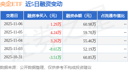 央企ETF:11月6日融资净买入1.29万元,连续3日累计净买入8.79万元