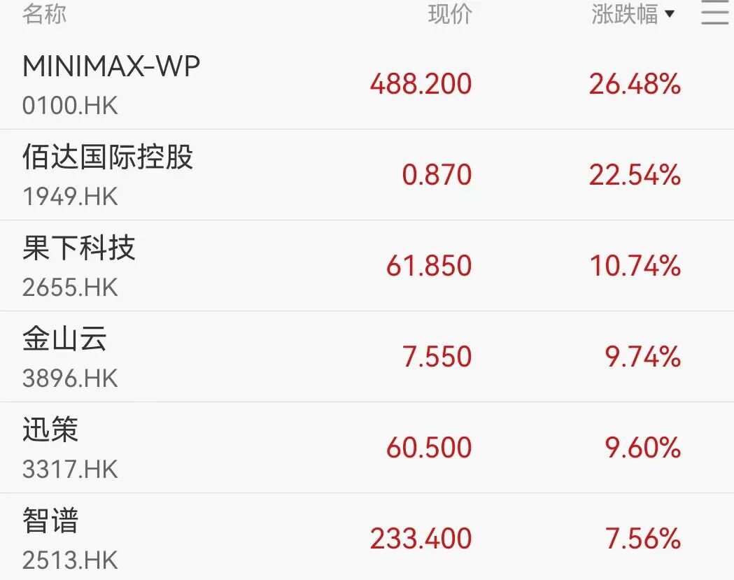 港股AI大涨,MINIMAX飙升26%,智谱涨逾7%,阿里涨近3%,千问推出最强模型