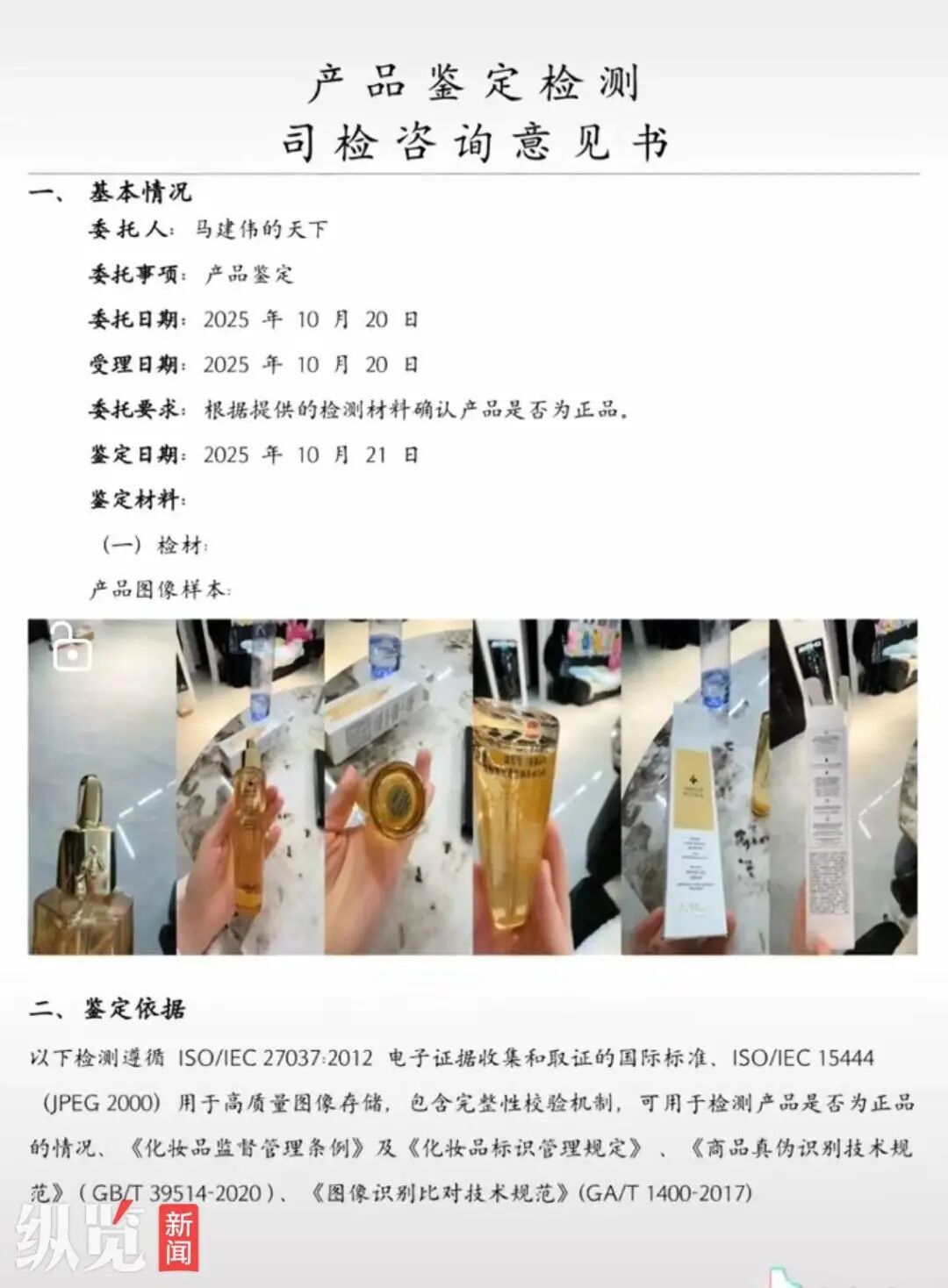 每经编辑|陈柯名 近日,有消费者称在贾乃亮直播间购买的娇兰化妆品疑似假货,引发关注。 据钱江视频消息,网友称,自己于10月16日在贾乃亮抖音直播间"双11大牌美妆巅峰盛典"中,通过"Guerlain娇兰官方旗舰店"链接购买了娇兰黄金复原蜜 等产品(总价7000余元,复原蜜单价1540元)。收货后,消费者发现外包装廉价、瓶身塑料感强,香味和质地与专柜正品不符,使用后出现刺痛、糊脸等 不适反应。后消费者自费送检,第三方机构通过包装字体、瓶盖浮雕、瓶体结构等比对,出具"综合判定为伪造产品"的意见。 网友"嘟嘟囔囔"在发布的视频中晒出的"鉴定书"。(来源/视频截图) 但该报告被指未完整展示鉴定结论部分,仅截图显示了"伪造产品"字样。平台以证据不足为由拒绝诉求,要求提供中检或国检报告。然而,这类机构不支 持个人检测,且因商家拒绝配合提供品牌送检授权书,无法进行中检或国检检测。 据大河财立方,11月18日,贾乃亮签约MCN遥望科技回应记者:"直播间所售娇兰产品均由Guerlain娇兰官方旗舰店统一发货,运营主体为路威酩轩香水 化妆品商贸 (上海) 有限公司,是娇兰品牌在中国的官方直营公司。" 11月18日晚,贾乃亮工作室 ...