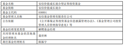陈振宇离任安信价值成长混合 聂世林管理