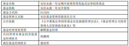 梁冰哲离任安信永盈一年定开债与安信永盛定开债