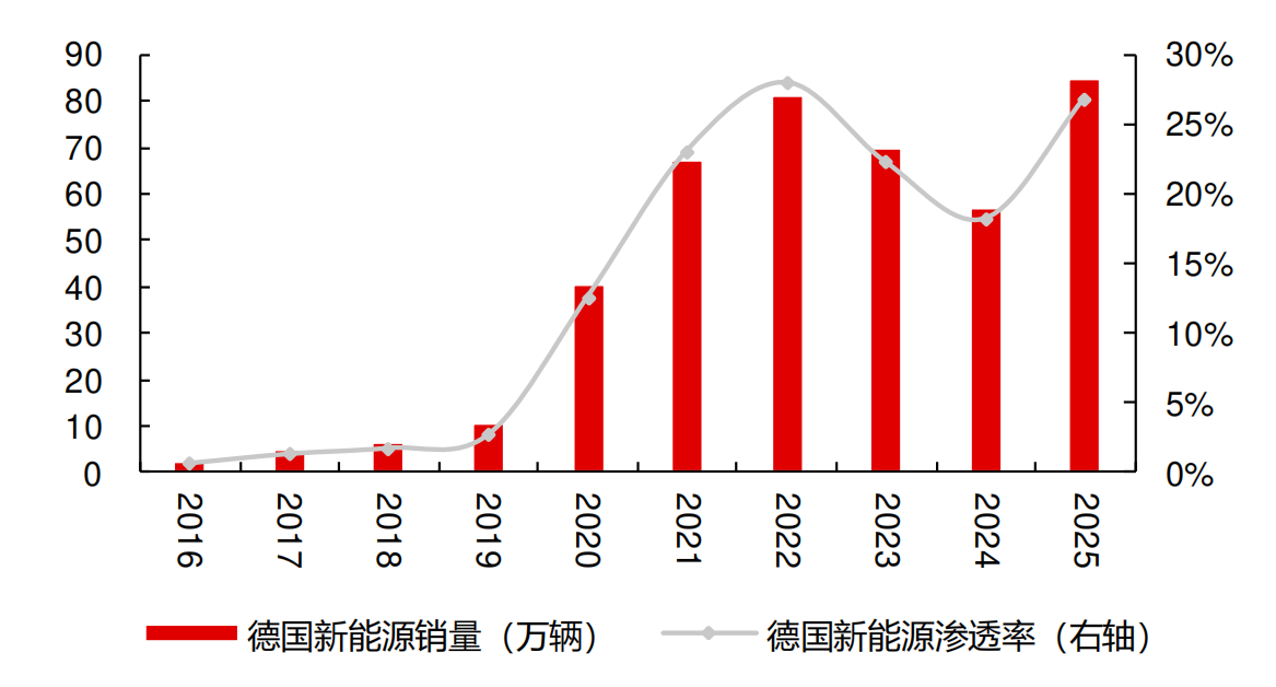 2026年初,德国政府宣布重启总额达30亿欧元的电动汽车购车补贴计划,最高补贴额度提升至6000欧元。2016年,德国曾启动电动汽车补贴计划,2023 年终止,此番重启补贴,不仅为德国本土汽车产业注入强心剂,更成为欧洲加速电动化转型的关键转折点。 此前欧洲非常重视绿色能源的运用,出台《欧洲绿色协议》、《欧洲气候法》、《欧洲电池法》等多项法规。然而,欧洲的电动汽车增长速度并不理 想。此番,德国重启补贴,欧洲有望追赶电动汽车时代热潮。 德国汽车工业的"自救与突围" 德国此次补贴政策覆盖纯电动汽车、插电式混合动力及增程式车型,补贴金额根据家庭收入、人口规模及车辆类型分级设计。德国补贴政策设计凸显两 大目标,刺激中低收入群体消费与推动技术路线多元化。 德国为何会在电动汽车补贴计划终止3年后重启补贴计划?德国电动汽车市场的断崖式下滑是最主要的原因,2024年,德国纯电动车注册量同比下降 27.4%至38万辆,市场份额从2023年的18.7%骤降至13.5%。大众ID.3在补贴取消后月销量更暴跌50%,与特斯拉Model Y的销量拉开差距。 资料来源:长江证券研究报告 2016年,德国启动电动汽车补贴时,人们的消费观还没 ...