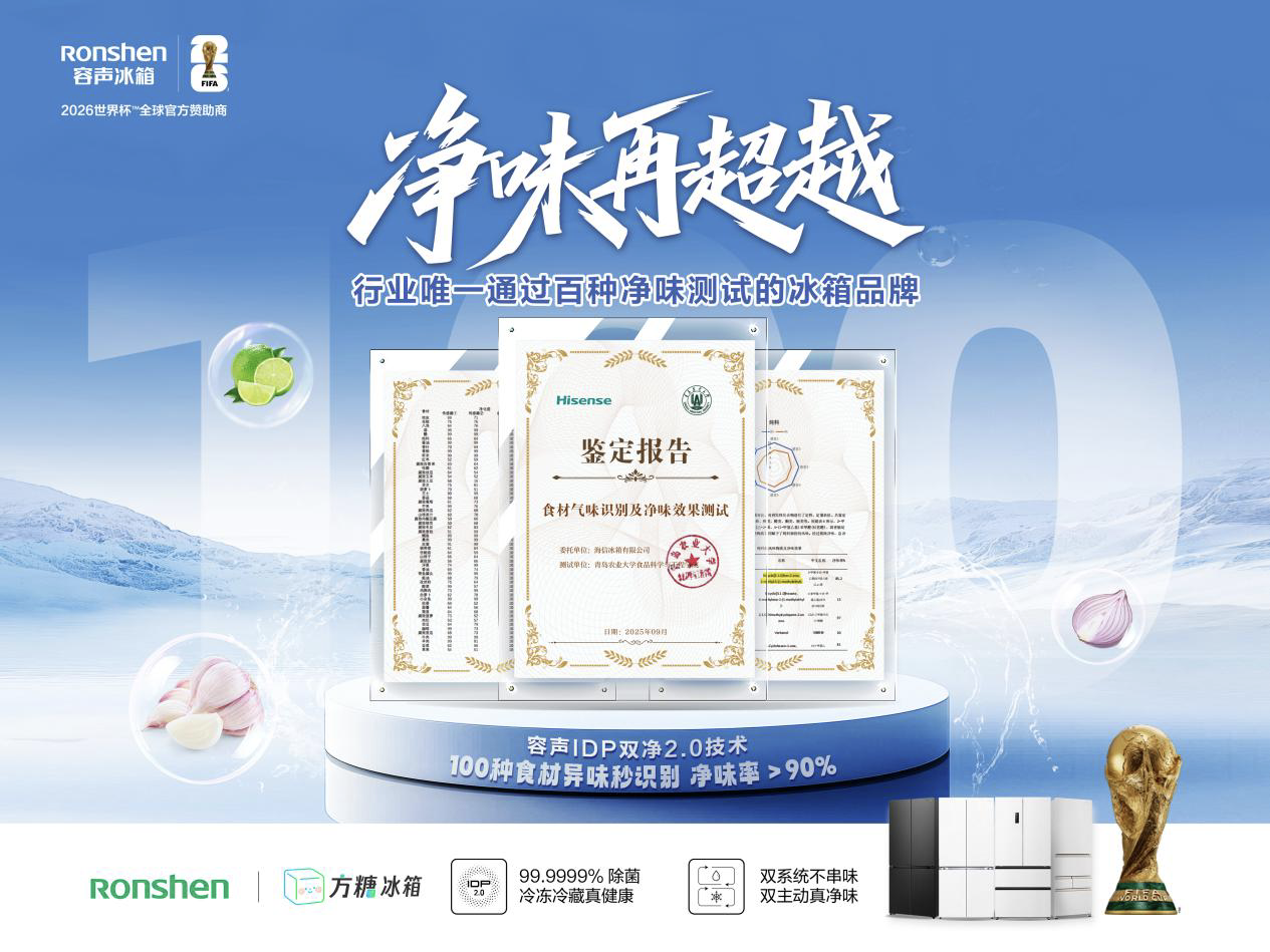 10月14日,容声冰箱举办"开新世界杯主动净味领鲜11.11——容声冰箱100种净味"发布会。本次活动聚焦于现代家庭冰箱普遍面临的"异味"问题,正式发布 了其"100种净味"技术成果。发布会还邀请到在《甄嬛传》中饰演"温太医"的演员张晓龙担任"百味体验官",通过现场一系列直观实验,展现了该技术在食 材储存健康方面的强力表现。 10月14日,容声冰箱正式发布了其"100种净味"技术成果。基于对中国家庭健康需求与品质生活趋势的深刻洞察,容声此次发布的"100种净味"技术成果,精 准契合了当下消费者对健康家电的升级需求,标志着冰箱行业正式迈入精准净味、健康守护的新阶段。发布会还邀请到在《甄嬛传》中饰演"温太医"的演员 张晓龙担任"百味体验官",通过现场一系列直观实验,展现了该技术在食材储存健康方面的强力表现。 发布会上,容声冰箱宣布联合青岛农业大学完成了针对100种食材腐败异味的系统性测试与净化验证报告。报告显示,容声方糖冰箱所搭载的IDP双净2.0技 术,能够有效净化日常生活中常见的上百种食材腐败产生的异味。 同时,容声在此次发布会上还首发了新品容声572双净2.0冰箱,该新品同样搭载了这项先进的IDP双净2.0 ...
