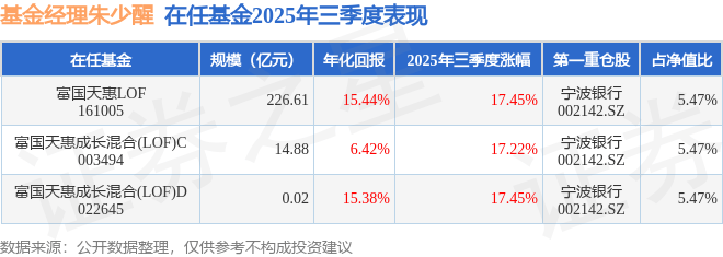 朱少醒2025年三季度表现,富国天惠LOF基金季度涨幅17.45%