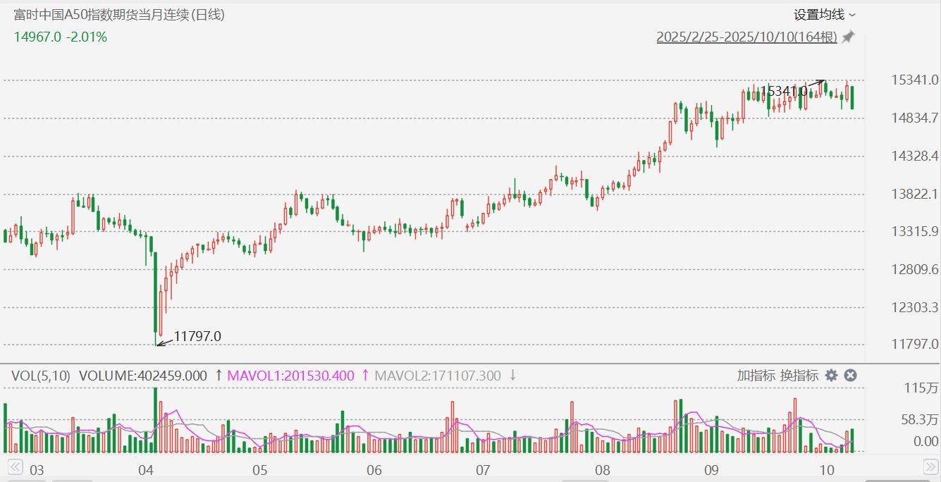 每经AI快讯,10月10日,富时中国A50指数期货跌2.60%,报14588.0点。 ...