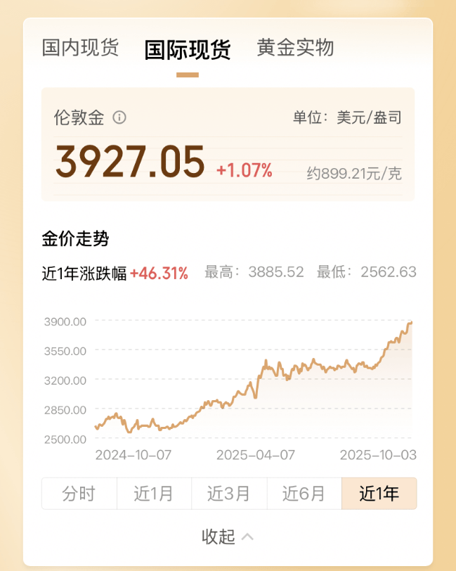 据智通财经10月6日消息,现货黄金本周开局维持强势,上破3900美元/盎司关口,日内涨幅0.35%,再创历史新高。距离首次突破3800美元关口仅不到10 天。 今日国内黄金饰品价格对比显示,国内多家黄金珠宝品牌公布的境内足金首饰价格跟随国际金价创纪录涨势,其中老庙黄金涨至1129元/克,周生生足金 饰品涨至1132元/克。 高盛研究部分析师Daan Struyven、Lina Thomas、Alexandra Paulus在最新发布的报告中表示,流入黄金ETF的资金意外强劲,超过了此前模型预测的水 平。私人投资者大力投资黄金的可能性,给他们的预测带来了"巨大的上行风险",即2026年年中4000美元/盎司和明年年底4300美元/盎司。 瑞银近期发布报告称,黄金市场目前倾向于看涨行情,预计到2026年年中金价将升至4200美元/盎司。 龙凤镯、喜字链、对戒等传统婚庆金饰依旧是销售主流,而随着金价持续攀升,5D工艺黄金凭借其轻量化、立体感的特色和时尚设计,正成为婚庆市场 的新宠,尤其受到年轻消费者的青睐。 展望未来走势,机构普遍认为,金价仍有上涨空间。 巴克莱银行策略师认为,相对于美元和美国国债,黄金价格似乎没有 ...