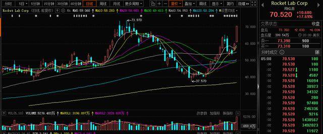 《科创板日报》12月22日讯(编辑 宋子乔)美股商业航天股周五集体大涨,Rocket Lab Corp(火箭实 验室)涨17.69%,AST SpaceMobile Inc-A涨15.03%,维珍银河涨6.71%。 带头领涨的火箭实验室为目前唯一成功实现轨道级发射并上市的"第二梯队"领头羊,刚获得来自美国太 空发展局(SDA)的巨额订单,也是其自身历史上最大的订单。 据美国《空天部队》杂志网站报道,当地时间12月19日(周五),美国太空军下属的美国太空发展局宣 布,向4家公司授予价值35亿美元的合同,用于采购总共72颗导弹预警和跟踪卫星——这是迄今为止美 军低地球轨道星座的最大一笔交易。 美国太空发展代理主任古尔帕塔普•桑杜在一份声明中表示,第三批卫星将"显著扩大"SDA的覆盖范 围,并提高其跟踪星座的精度,"这些卫星的加入将实现近乎连续的全球导弹预警和跟踪覆盖,以及能 够生成用于导弹防御的火控级跟踪的有效载荷。" 上述4家公司分别是洛克希德•马丁、诺斯罗普•格鲁曼、L3哈里斯和火箭实验室,它们将在未来3年内为 美国太空发展局各生产18颗卫星。由于各公司提供的卫星产品略有不同,相应的合同金额有差别: 洛克希德 ...